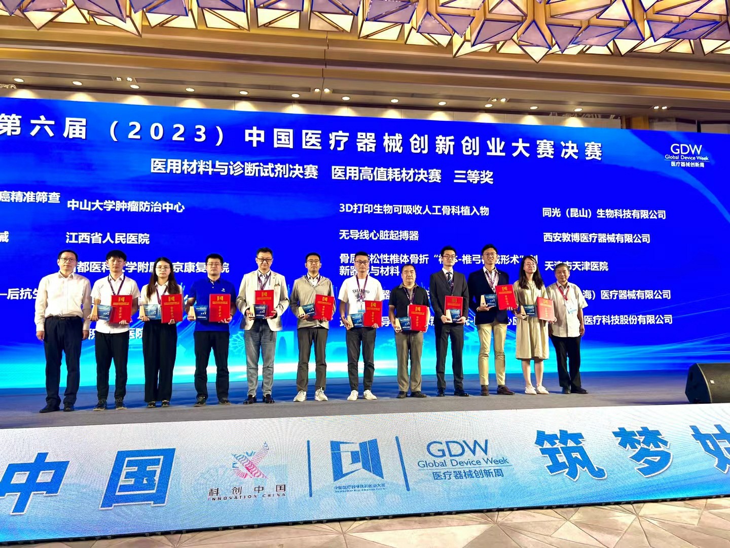 同光生物“3D打印可吸收骨科植入物”项目受邀参加高价值医用耗材类别决赛,经过路演和专业评审,荣获该类别组决赛三等奖(第六名)。